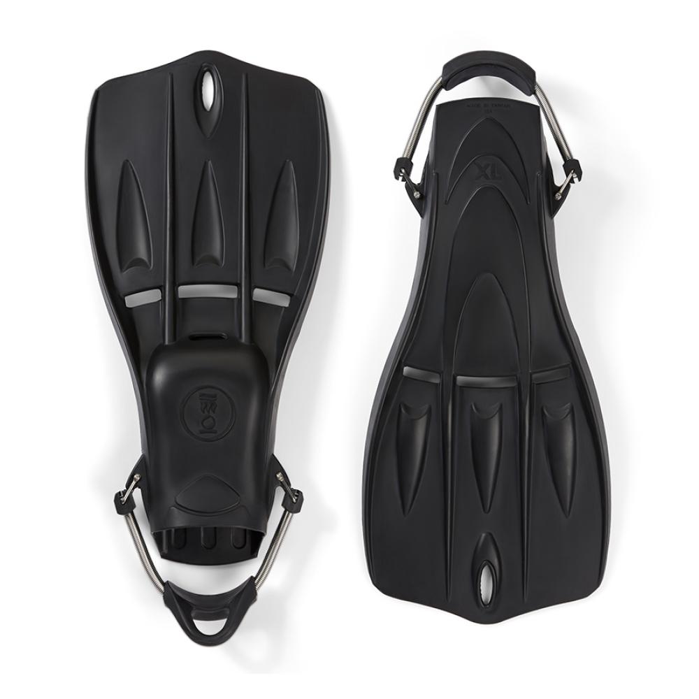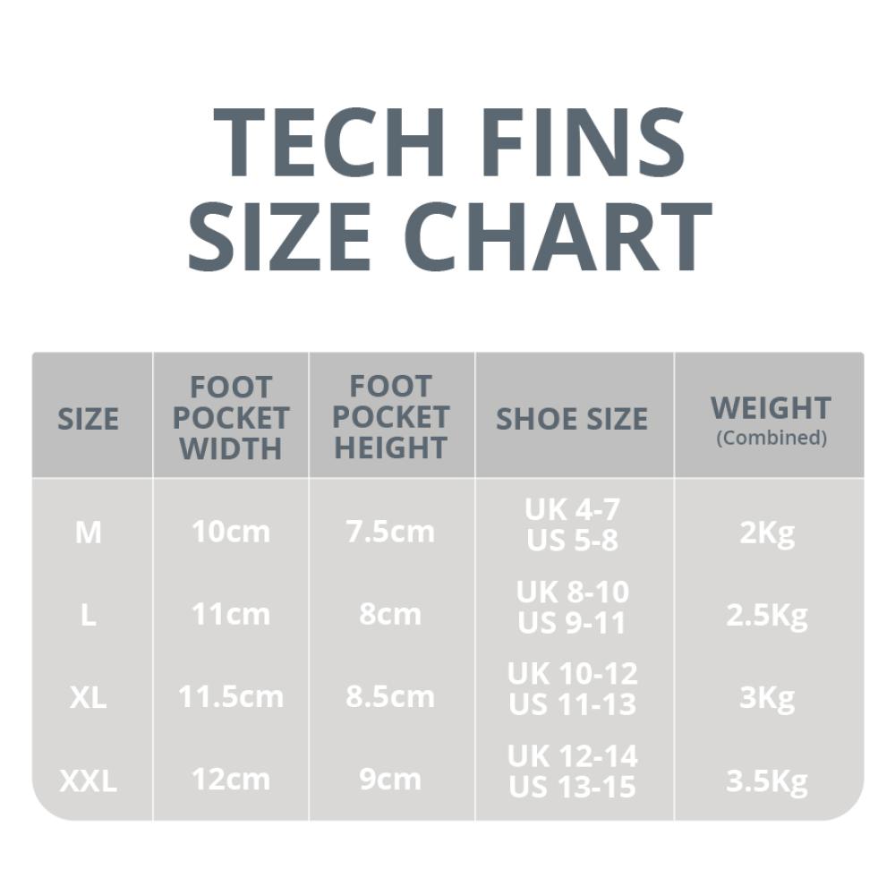 The Tech Fins were developed with technical divers in mind with a slightly negative buoyancy characteristic but is suitable for all levels of diver looking for a high-performance rubber fin. The wider blade gives maneuverability without compromising the power which is there when needed, while the shorter length improves agility and makes stowing the fins for transport more convenient. Spring straps with comfortable heel pads keep the feet securely held in place and these spring straps can be removed and changed easily with everyday tools if required.